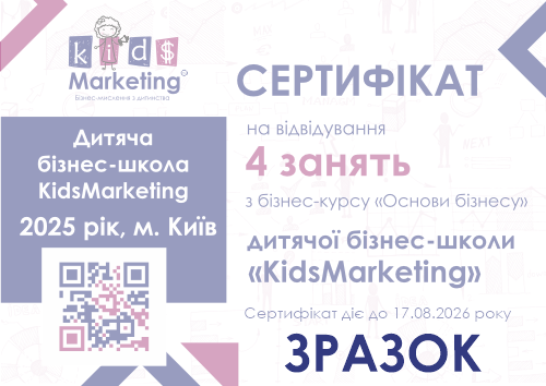 Подарунковий сертифікат на онлайн-заняття від дитячої бізнес-школи KidsMarketing — це справжня інвестиція в розвиток вашої дитини та її майбутнє.